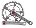Classically styled single chainring crank with an elegant polished finish and slight accents of color through the use of red anodized bolts.