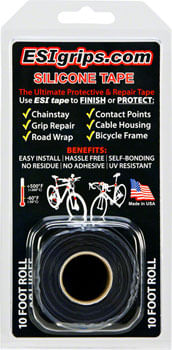 ESI Silicone Tape is a non-adhesive tape that sticks to itself and ESI’s grips and tape. Silicone tape makes a great finishing tape when wrapping handlebars or used to protect your frame from damage.
