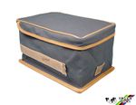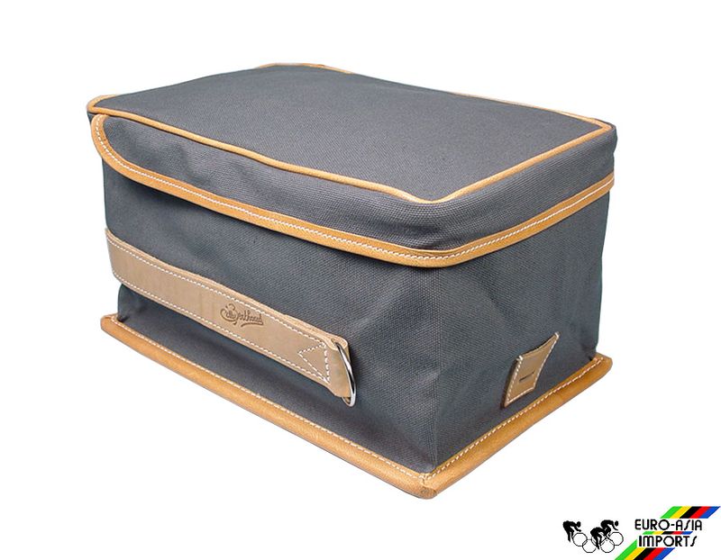 Secures to a rear rack with two straps. Cover closed by zipper under flap. Volume is 9 liters. 300 x 190 x 175mm.