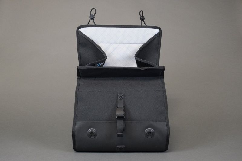 The Grill Bag is a scaled-up Diamond Bag. With a 12-liter capacity, it’s designed for the bigger loads of bikepacking or commuting with a small laptop while still fitting between most drop-bars. Our signature “origami” folding lid opens towards the rider, allowing easy access to your gear while on the move.