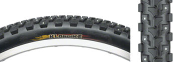 The Kenda Klondike is a great winter tire for cyclocross or trekking-commuter bikes in light snow. Carbide tipped studs provide traction on ice.
