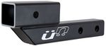 The Hi-Lo is a 2" hitch extension that can be positioned for rise or drop positions. It provides 7" or 10" of extension and 2 1/8" of rise/drop for fitment options to clear spare tires or add ground clearance.