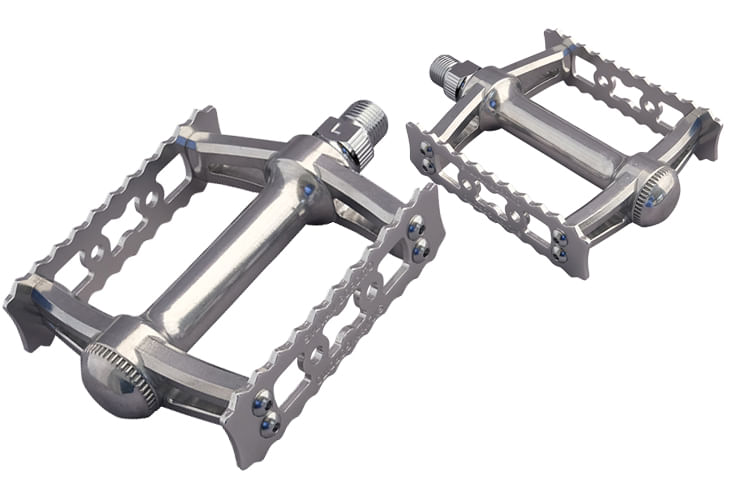 Maintaining the same width of the Sylvan touring, we have increased the length of the pedal body allowing for a large comfortable platform for the rider to firmly rest their feet. This pedal is ideal for those looking for a comfortable ride, as well as those with large legs or shoes. Like the Sylvan touring, the cage plate tooth profile is grippy, but not particularly aggressive.
